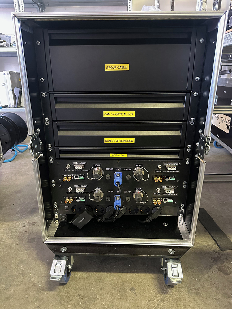 - 40 élő kép, 32 hangsáv, 16 tally, 16 intercom - SMPTE optikai kamera rendszer, HD-4K-s 6 szett (12G SDI-tally-UTP-kameratáp) - LiveU Solo Pro HD/4K-s VIDEÓ ENCODER, hordozható 6db SIM-es net vevővel