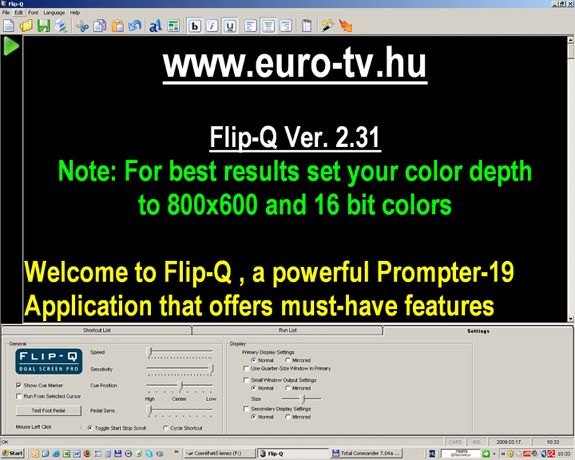 A műsorvezető olvasási ritmusának megfelelően az "egér" görgetésével, vagy a klaviatúrán a kúrzor nyilakkal a szövegfutás