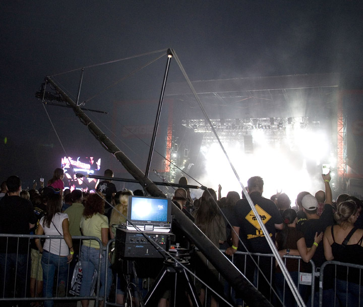 ↑9,5m-es Jimmy Jib Super Plus krán jellemzője:- X - Y irányban, 360°-ban mozgó kamera krán 2-3,8-5,6-7,4-9,2 m-es hosszban. / "Z" tengely külön opciós költség/ - Ellensúlyok 8 kg kamera és 9,5m-es hossz esetén 180kg. - 360 °-os körbeforgás vertikálisan, horizontálisan és oldalirányban. - Külön kiépített írisz-focus távvezérlő a jimmy-s technikusnak - rendezőnek.