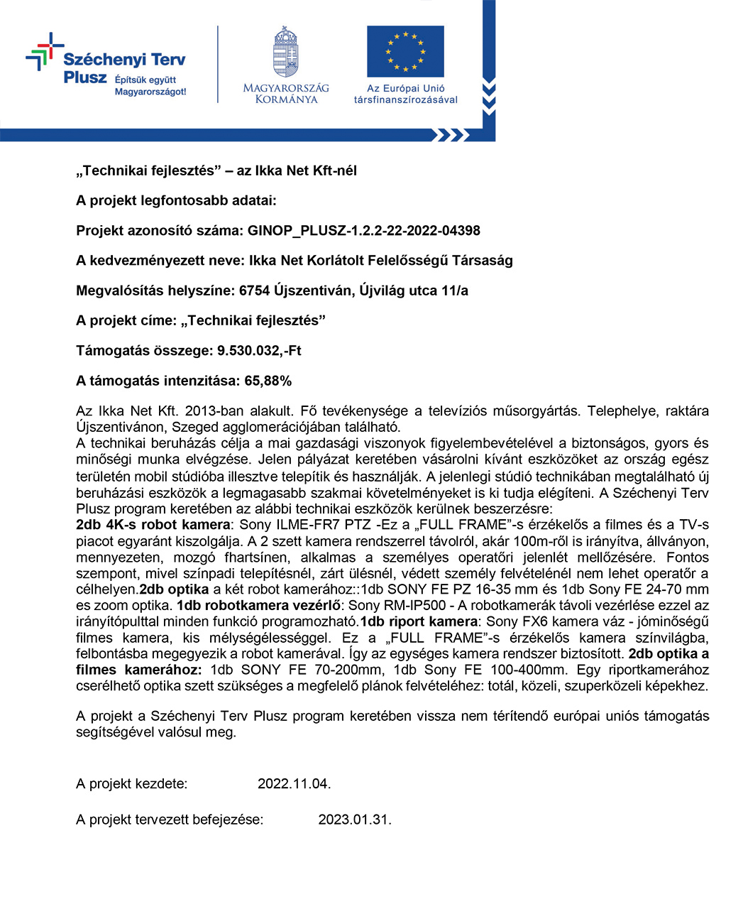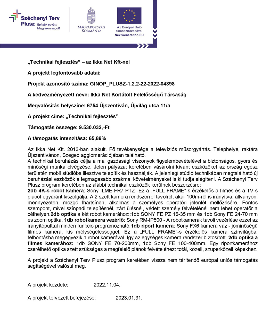 - "A sikeres magyar elnökség konferencia" videó felvétel és robot technika biztosítása alvállalkozóként